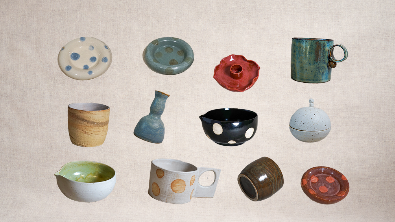 A small collection of hand-thrown ceramic objects,made in London.